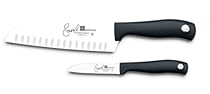 This set gives you a santoku, which is a small Asian-style slicing/chef knife with the characteristic hollows on the blade, and a small paring knife. They are made by Wuesthof, a German firm that makes top grade chefs' cutlery.