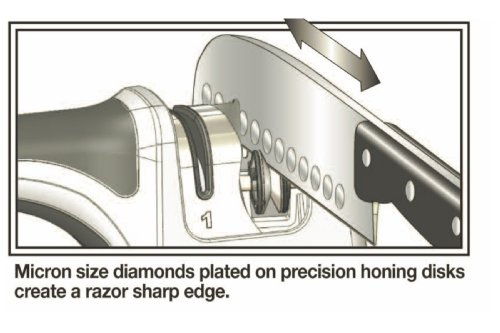 Chef's Choice 463 pronto manual asian/santoku sharpener is the fastest manual sharpener on the market. The 463 includes two stages, one for sharpening and a second for honing/polishing for a razor-sharp, arch- shaped edge that is strong and durable. 100-Percent diamond abrasives are used in both stages 1 and 2, and the diamond abrasive wheels will hold its shape indefinitely, (unlike ceramic wheels which lose shape over time). The criss-cross sharpening technology creates an extremely sharp edge...